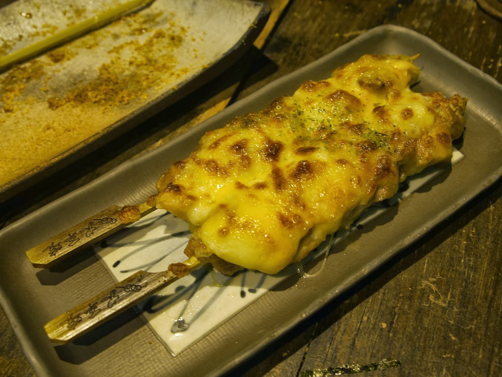 This guy, though! Chicken wings, stuffed with 明太子, or mentaiko, or "the marinated roe of pollock, and cod [yummy!!!]"--who'd have thought? Foods-stuffed-in-other-foods innovations are one of my favorite things ever, and this time around it worked quite well. The chicken was tender and stuffed to bursting, the mentaiko all gritty and visceral and nom-nom-nom. Yeah.